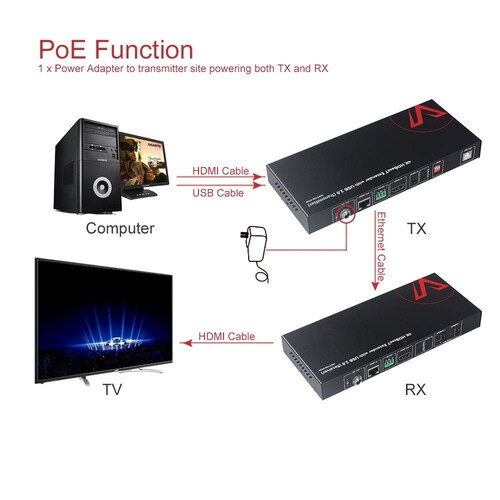 AV Access HDMI USB Extender (HDBaseT) KVM, 100 m 4K60Hz 1080p120Hz over Cat5e/6/… |